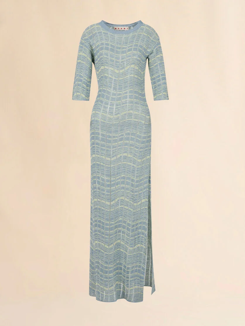 Maxi dress knitted from linen. Two-tone wavy jacquard pattern, broken up with laddered stitching for a striped openwork effect. Plain ribbed crew neck and wide 3/4 sleeves. Side slit. Embossed Alcantara Marni patch on the back neck. Made in Italy MODEL ABMD0287Q0UFL102WAB31