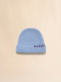 BLUE SHETLAND WOOL BEANIE WITH MARNI MENDING