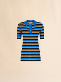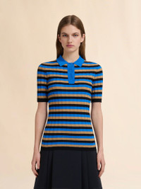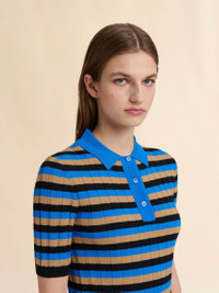 BROWN AND BLUE STRIPED WOOL POLO SHIRT