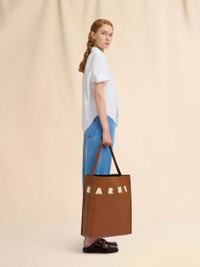Museo hobo bag crafted from smooth calfskin leather. Embellished with contrast puffy Marni patches. Open design with single top handle. Lined interior with zip pocket and embroidered logo patch. Made in Italy MODEL SHMQ0070U0P6483ZO722 COMPOSITION Body: 100% Calf Leather - Inside: 100% Calf Leather - Lining: 95% Polyester 5% Polyurethane - Metallic Parts: 100% Brass - Metallic Parts: 100% Zama