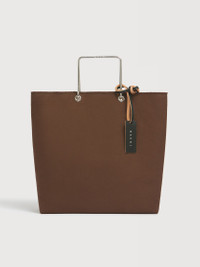 BROWN CANVAS SHOPPER WITH METAL HANDLES