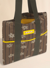 Tote bag made from soft cotton. The patterned fabric has been sourced from the Marni archive as part of the upcycling project. Twin tape handles and leather accents. Lined in cotton. Embroidered Marni logo. Made in Italy MODEL SHMP0166U0P881300M80