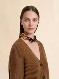 Bi-material chain necklace made from shiny gold-plated brass and bold resin. A reinterpretation of Marni’s signature Leather Chain theme. Logo-engraved clasp. Made in Italy MODEL COMV0556A0P652300M29