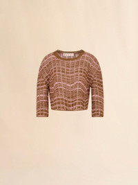 BROWN RIBBED LINEN SWEATER WITH WAVY PATTERN