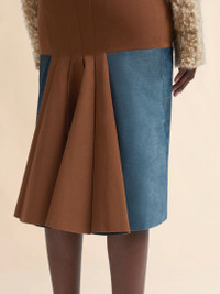 Mid-length pencil skirt made from wool grain de poudre. Sewn with a contrast pony hair leather insert at the front and soft pleats at the back. Side zipper fastening. Fully lined. Made in Italy MODEL GOMA0793NUUTW95000M29