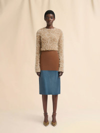 BROWN WOOL SKIRT WITH PONY HAIR INSERT