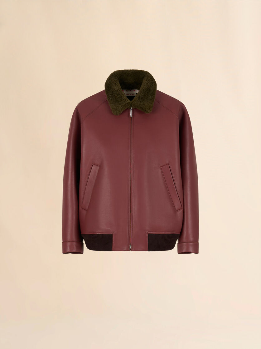 BURGUNDY LEATHER JACKET WITH SHEARLING COLLAR