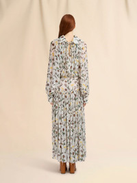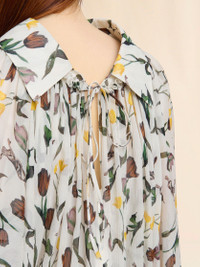 CREAM CHIFFON DRESS WITH TULIPS AND HARES PRINT