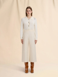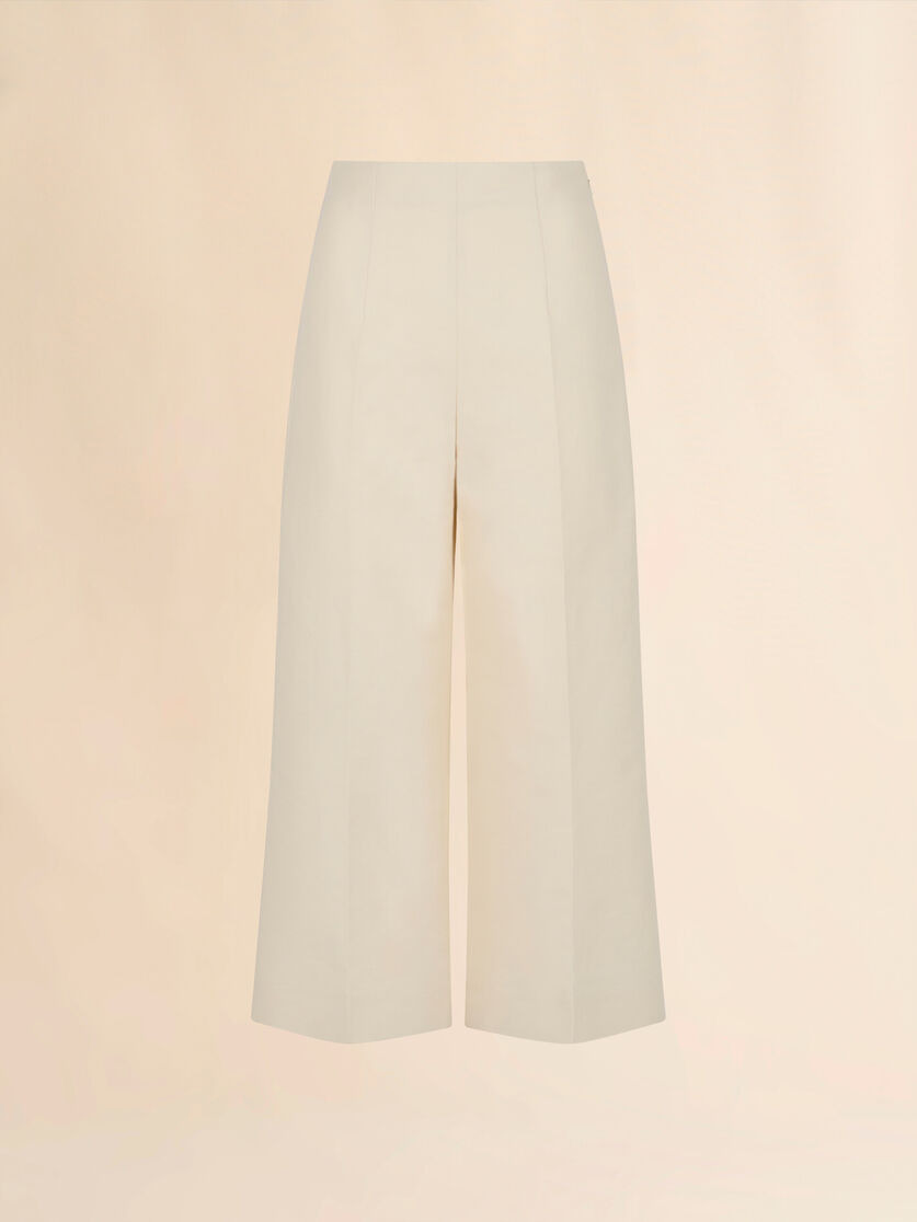 Cropped trousers made from cotton cady. High-waisted fitted style with darts and no pockets, fastening with a concealed side zipper. Flared leg. Made in Italy MODEL PAMA0476A1TCX2800W06 FIT The model is 5' 10''. The model is wearing size 40 IT. COMPOSITION Primary Fabric: 100% Cotton Woven