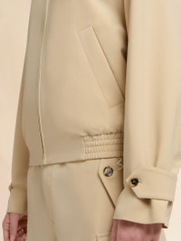 Jacket with shirt collar and concealed zip, made from a light wool blend. Regular fit with elasticated hem, adjustable buttoned cuff tabs and welt pockets. Marni Symbol details: hand-embroidered on the shoulder and zipper pull. Lined. Made in Italy MODEL JUMU0189S1UTP77100W25 COMPOSITION Primary Fabric: 53% Polyester Woven 43% Virgin Wool Woven 4% Elastan Woven - Lining: 100% Viscose-Rayon