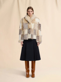 Boxy shearling jacket. Inlaid checkerboard design, combining smooth, curly, long-hair and short-hair textures for a tactile effect. Button closure. Unlined. Made in Italy MODEL GIMX0303Q1ULM124ROW09 COMPOSITION Fur: 100% Lamb Fur - Pocket Lining: 100% Cotton Knit