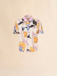 CREAM POPLIN CROPPED SHIRT WITH MELODIA PRINT