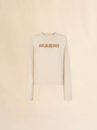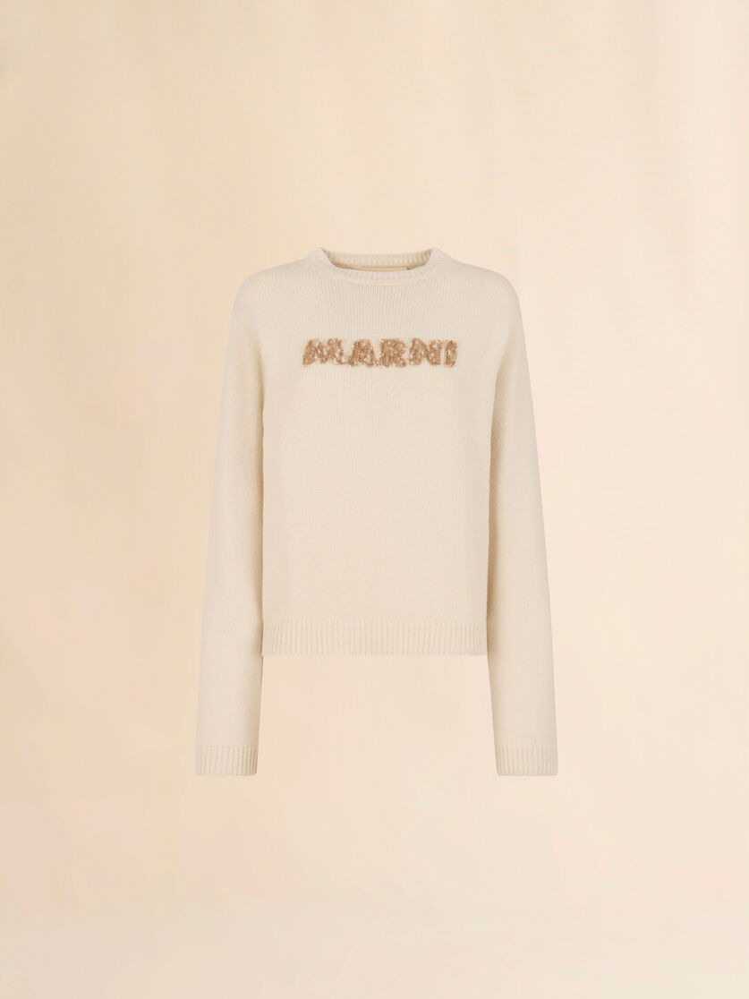 CREAM WOOL SWEATER WITH LASER-CUT MARNI LOGO