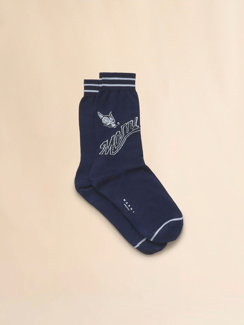 Mid-calf socks made from a stretch cotton blend. Jacquard Marni logo and wolf detail, interpreting one of the prints from this season's exclusive Artists' Capsule. Made in Italy MODEL SKZC0151Q0UFC19000B61 COMPOSITION Primary Fabric: 80% Cotton Knit 20% Polyamide Knit