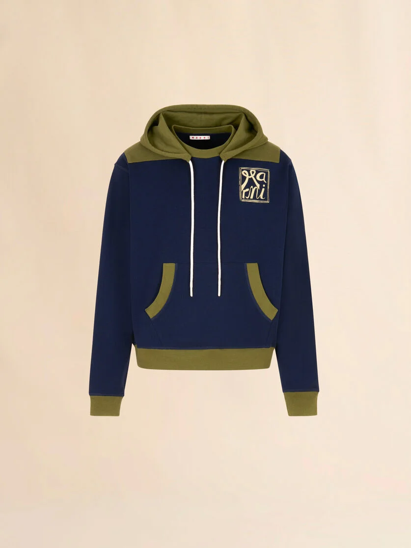DEEP BLUE COTTON SWEATSHIRT WITH CONTRAST ACCENTS