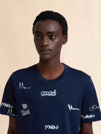 Short-sleeved T-shirt made from cotton jersey. Regular fit with crew neck. Detailed all-over with multiple doodle-style Marni logo prints. Made in Italy MODEL HUMU0198DPUSCY34LOB99 COMPOSITION Primary Fabric: 100% Cotton Knit