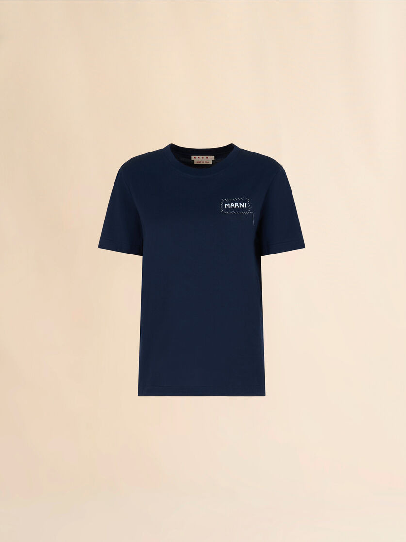 DEEP BLUE ORGANIC COTTON T-SHIRT WITH MARNI APPLIQUÉ