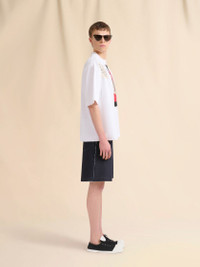Bermuda shorts made from bonded stretch denim. Trompe l'oeil five-pocket design, with classic two-needle stitching mimicked through raw-edge glued overlays. Zip and button closure. Embroidered Marni Symbol on the side. Made in Italy MODEL PUJU0115SYUSCX59UNB99 COMPOSITION Primary Fabric: 98% Cotton Woven 2% Elastan Woven - Pocket Lining: 100% Cotton Woven