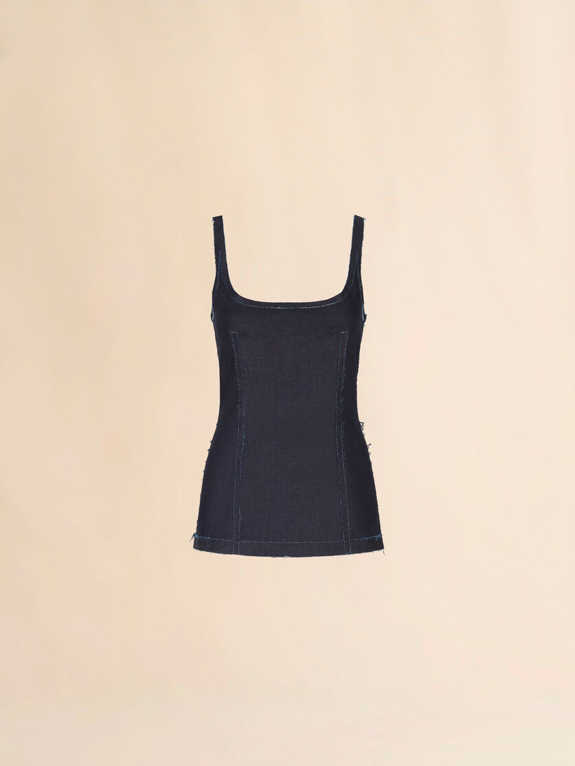 DEEP BLUE STRETCH DENIM TROMPE L'OEIL TANK TOP