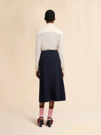 DEEP BLUE WOOL CRÊPE A-LINE SKIRT