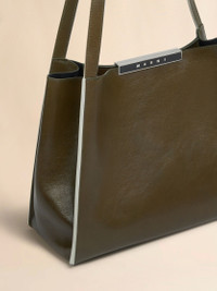 Cresta E/W tote bag handcrafted from shiny calfskin leather with a vachetta finish and captivating pull-up effect. Small size. Panelled gusset construction with contrast trims. Magnetic metal clasp with enamelled logo. Bonded suede-look lining. Inside open pocket and embroidered Marni logo. Made in Italy. Made in Italy MODEL SHMP0152U0P853300V58 COMPOSITION Body: 100% Calf Leather - Inside: 100% Calf Leather - Lining: 100% Polyester - Lining: 100% Polyurethane - Metallic Parts: 100% Brass