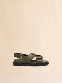 Iconic crisscross Fussbett sandal crafted from smooth calfskin leather, fastening with an adjustable buckle strap. Monocolour design with tonal leather insole and rubber outsole. Raised Marni lettering on the heel. Made in Italy MODEL FBMS015701P361400V58 COMPOSITION Upper: 100% Calf Leather - Lining: 100% Calf Leather - Inside: 100% Ovine Leather - Sole: 100% Rubber
