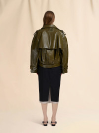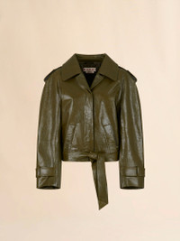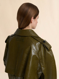 DEEP GREEN LEATHER SHORT TRENCH COAT