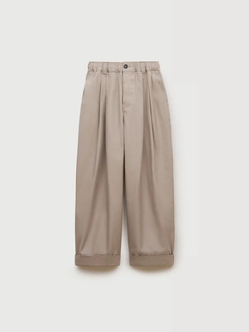 Pants made from cotton canvas. Double pleats and super-elasticated waistband for a voluminous bunched-up look. Hidden inner drawstring. Finished with turn-up cuffs, slant hip pockets and back welt pockets. Made in Italy MODEL PAMA0646J0UTC64600N13