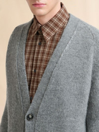 GRAY WOOL ALPACA CARDIGAN WITH WOLF PATCH