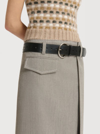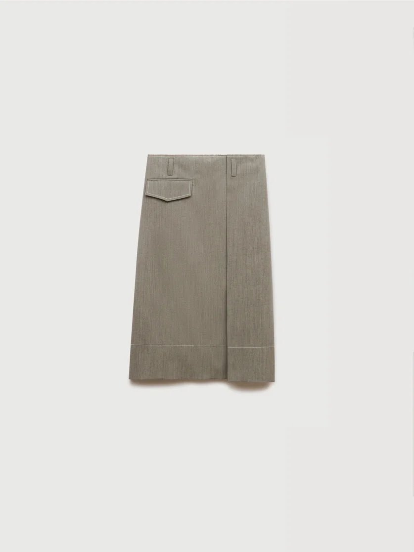 GRAY WOOL MIDI SKIRT WITH POCKET