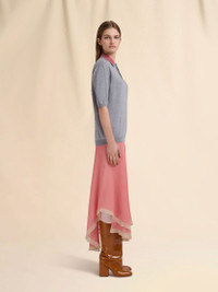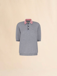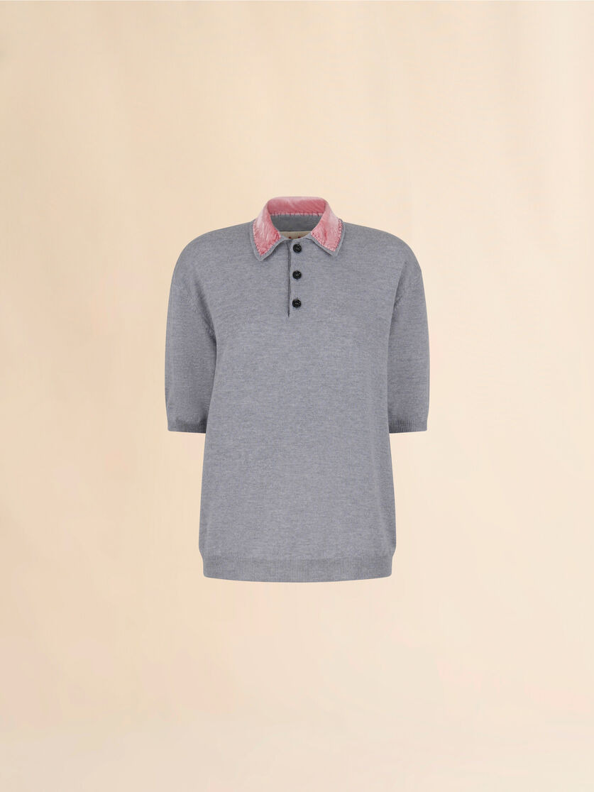 GRAY WOOL POLO SHIRT WITH VELVET COLLAR