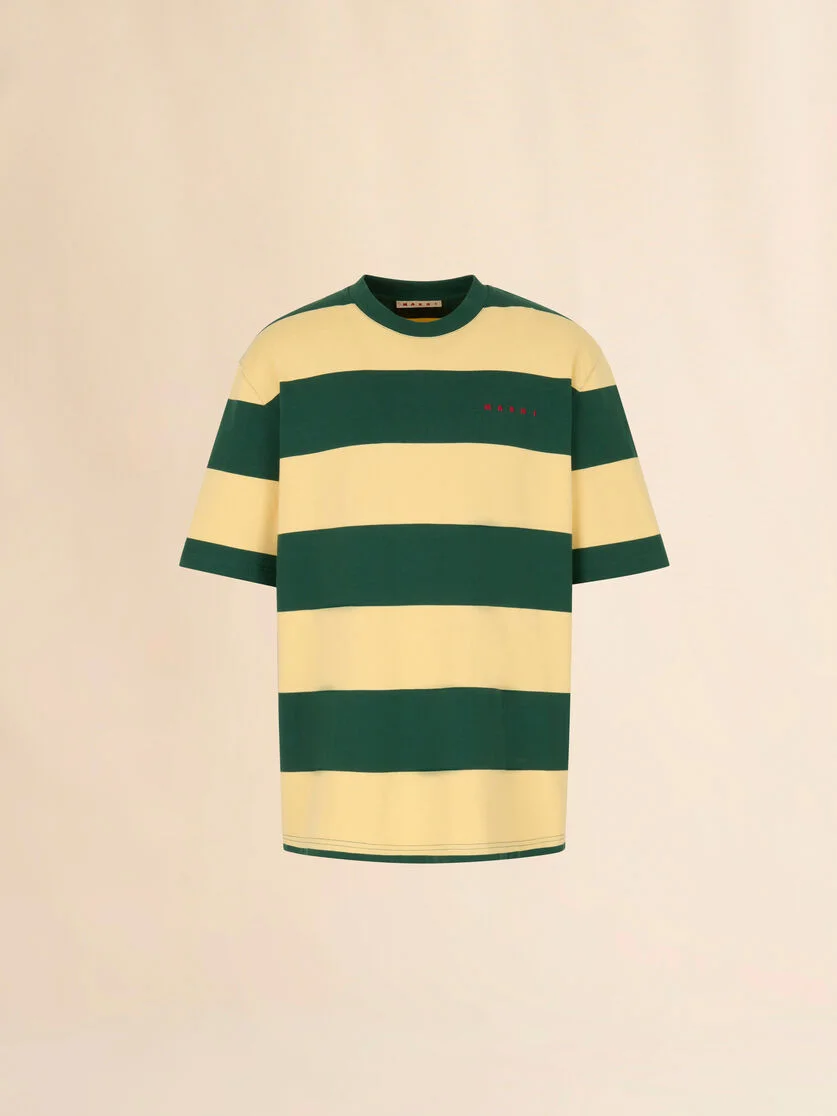 GREEN AND YELLOW MAXI-STRIPE COTTON T-SHIRT