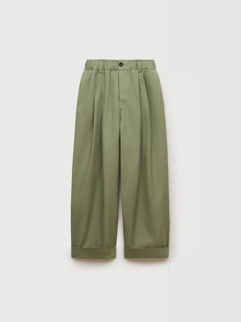Pants made from cotton canvas. Double pleats and super-elasticated waistband for a voluminous bunched-up look. Finished with turn-up cuffs, slant hip pockets and back welt pockets. Made in Italy MODEL PAMA0646J0UTC64600V18