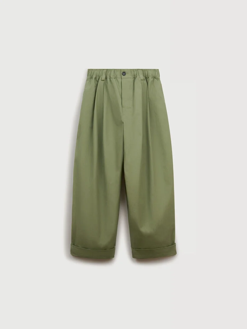 Pants made from cotton canvas. Double pleats and super-elasticated waistband for a voluminous bunched-up look. Hidden inner drawstring. Finished with turn-up cuffs, slant hip pockets and back welt pockets. Made in Italy MODEL PUMU0347J0UTC64600V18