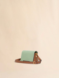 Trunkaroo rectangular mini shoulder bag crafted from calfskin leather. Colour-block design in three contrasting hues. Front flap with magnetic closure, featuring engraved Marni lettering and oversized stud details. Contoured base on the front and back. One compartment with inside pocket. Lined in nappa leather. Detachable and adjustable buckled shoulder strap: can also be worn as a clutch. Made in Italy MODEL SBMP0193U1P6948ZO894 COMPOSITION Body: 100% Calf Leather - Lining: 100% Ovine Leather - Metallic Parts: 100% Brass - Metallic Parts: 100% Steel