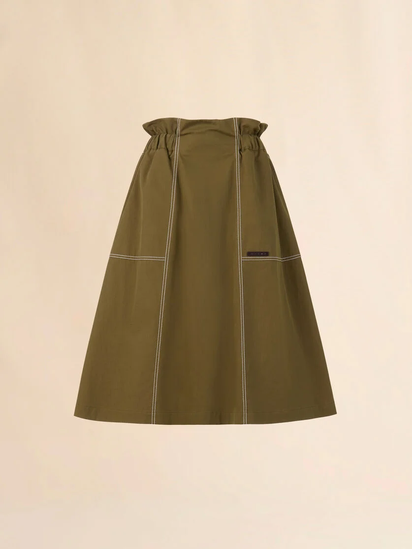 GREEN GABARDINE MIDI SKIRT WITH PAPERBAG WAIST