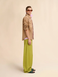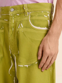 GREEN SCREEN-PRINTED DENIM WIDE-LEG PANTS