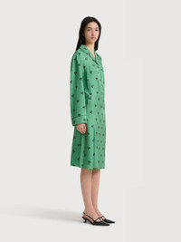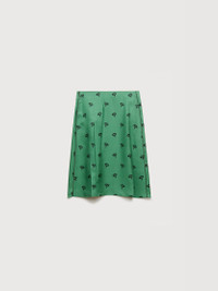 GREEN SILK TWILL MIDI SKIRT WITH FLORAL PRINT