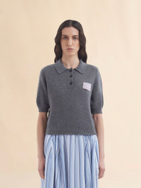 Short-sleeved cashmere jumper with polo button placket and collar. Regular fit with balloon sleeves. Ribbed cuffs and hem. Hand-stitched contrast Marni mending logo patch. Made in Italy MODEL POMD0035E0UFX32500N60 FIT The model is 5' 10''. The model is wearing size 40 IT. COMPOSITION 100% WSK