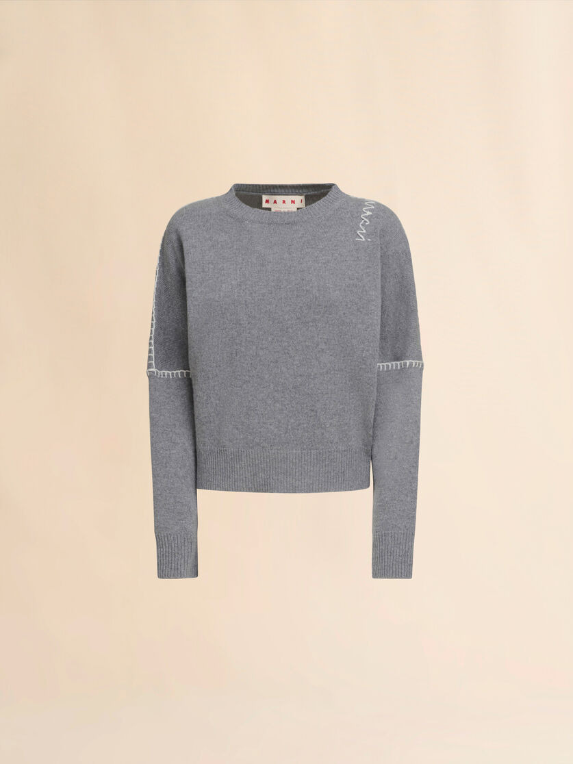 GREY WOOL AND CASHMERE CREW NECK JUMPER WITH MARNI SYMBOL