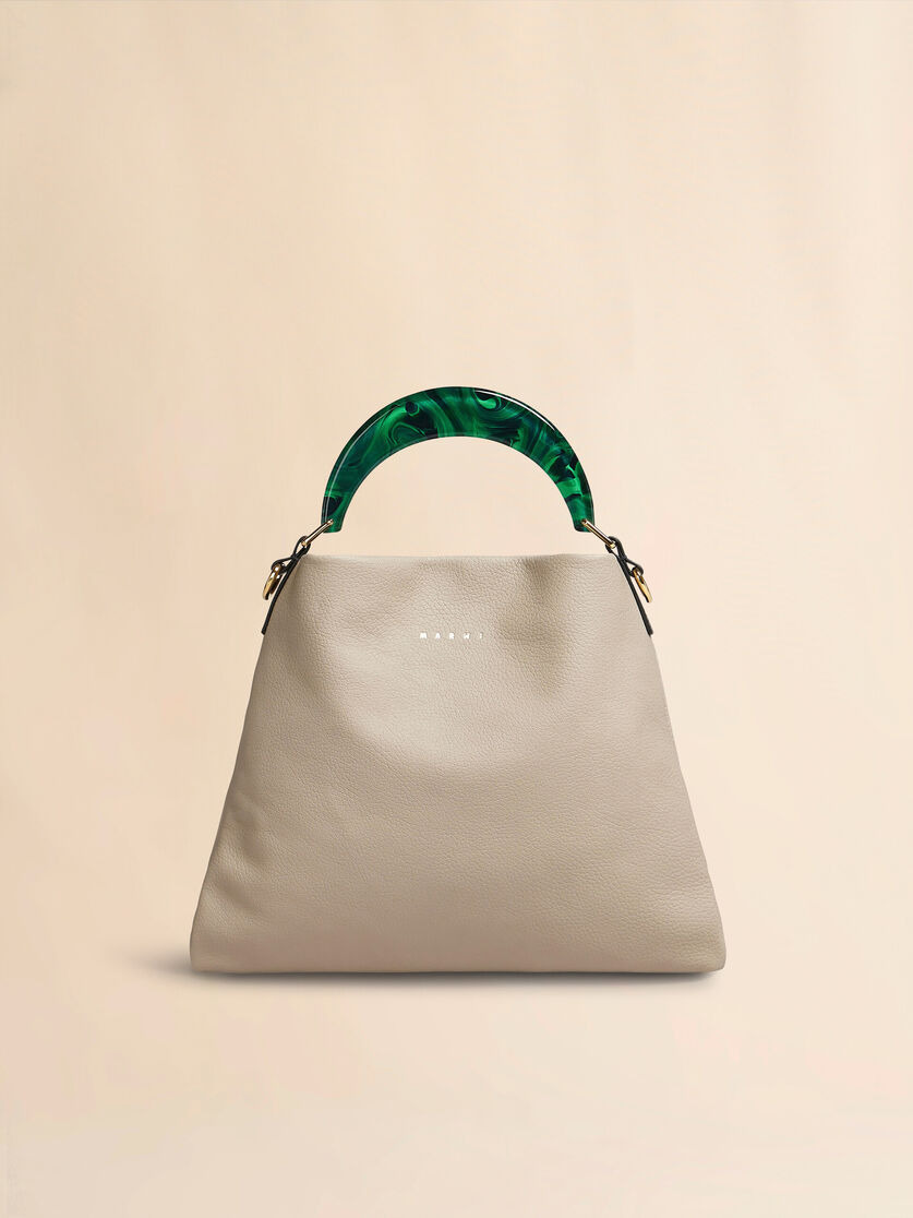 Hobo bag, small size, in soft grained leather with resin handle. Fabric lining with slot pocket inside. Removable and adjustable leather shoulder strap. Gold hardware. Marni gold logo stamped on the front. Made in Italy MODEL SCMP0065U0LV688Z2O35 COMPOSITION Body: 100% Calf Leather - Lining: 100% Cotton - Metallic Parts: 50% Brass 50% Polymethyl Methacrylate - Metallic Parts: 100% Brass - Metallic Parts: 94% Zinc 4% Aluminium 2% Copper