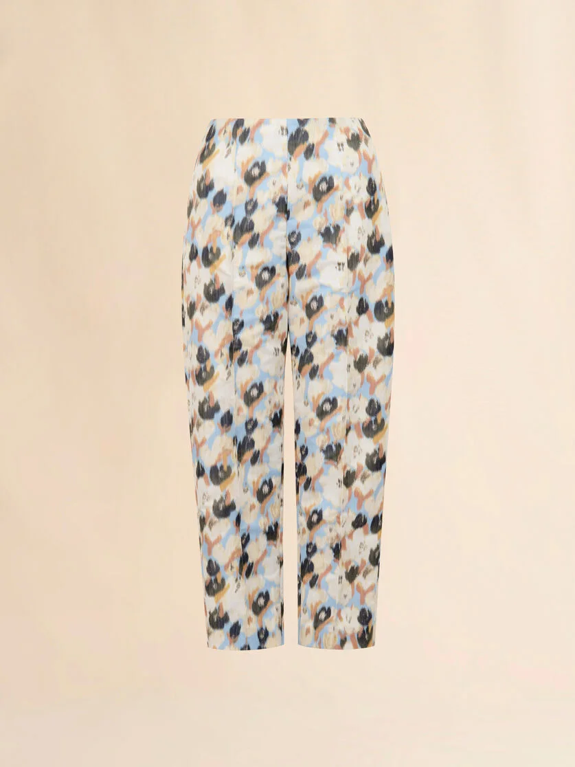 Trousers made from duchesse fabric with a subtle shine and a fluid yet compact feel. Enriched with this season's Secret Bouquet print, rendered in a chine technique for a soft, blurred effect. Slim mid-rise cut with pressed creases and back double welt pockets. Hidden side zip closure. Made in Italy MODEL PAMA0610A1UTP812JQB21