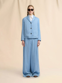 LIGHT BLUE SATIN SINGLE-BREASTED JACKET