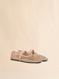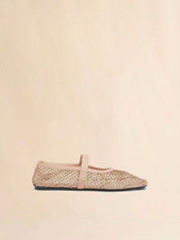 LIGHT PINK MESH MARY JANE BALLET FLAT WITH CRYSTALS