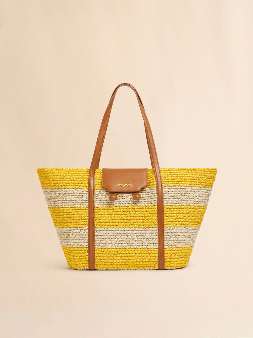 MEDIUM YELLOW STRIPE RAFFIA-EFFECT TRUNKAROO BEACH BAG