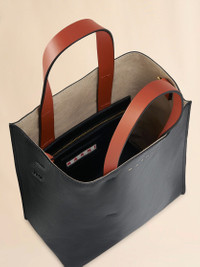 North/South tote bag, mini size, in tumbled leather; open top with zipped pocket inside. Fabric lining. Leather top handles and detachable shoulder strap, adjustable with buckle. Colorblocked design. Gold hardware. Gold printed logo outside. . Made in Italy MODEL SHMP0040Q0P2644Z2P16 COMPOSITION Body: 100% Calf Leather - Lining: 100% Cotton - Inside: 100% Calf Leather - Metallic Parts: 94% Zinc 4% Aluminium 2% Copper - Metallic Parts: 100% Brass