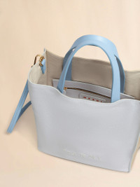 Museo North/South tote bag crafted from milled calfskin leather. Mini size. Colour-block design. Top handles and detachable and adjustable buckled shoulder strap. Open design with fabric lining and inside zip pocket. Hand-stitched Marni Mending logo on the front. Made in Italy MODEL SHMP0040L3P6533ZO829 COMPOSITION Body: 100% Calf Leather - Contrast: 100% Calf Leather - Contrast: 100% Polyester - Lining: 95% Cotton 5% Acrylic - Inside: 100% Calf Leather - Metallic Parts: 100% Brass - Metallic Parts: 100% Zama