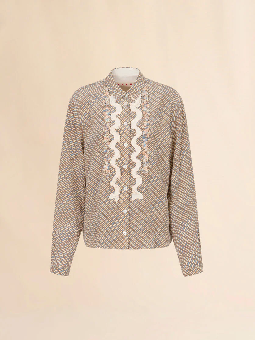 Long-sleeved shirt made from silk crepe de chine, printed with this season's delicate Criss Cross pattern. Ruffle detailing on the front. Regular fit with button closure. Made in Italy MODEL CAMA0663Q1UTSG42CRC24