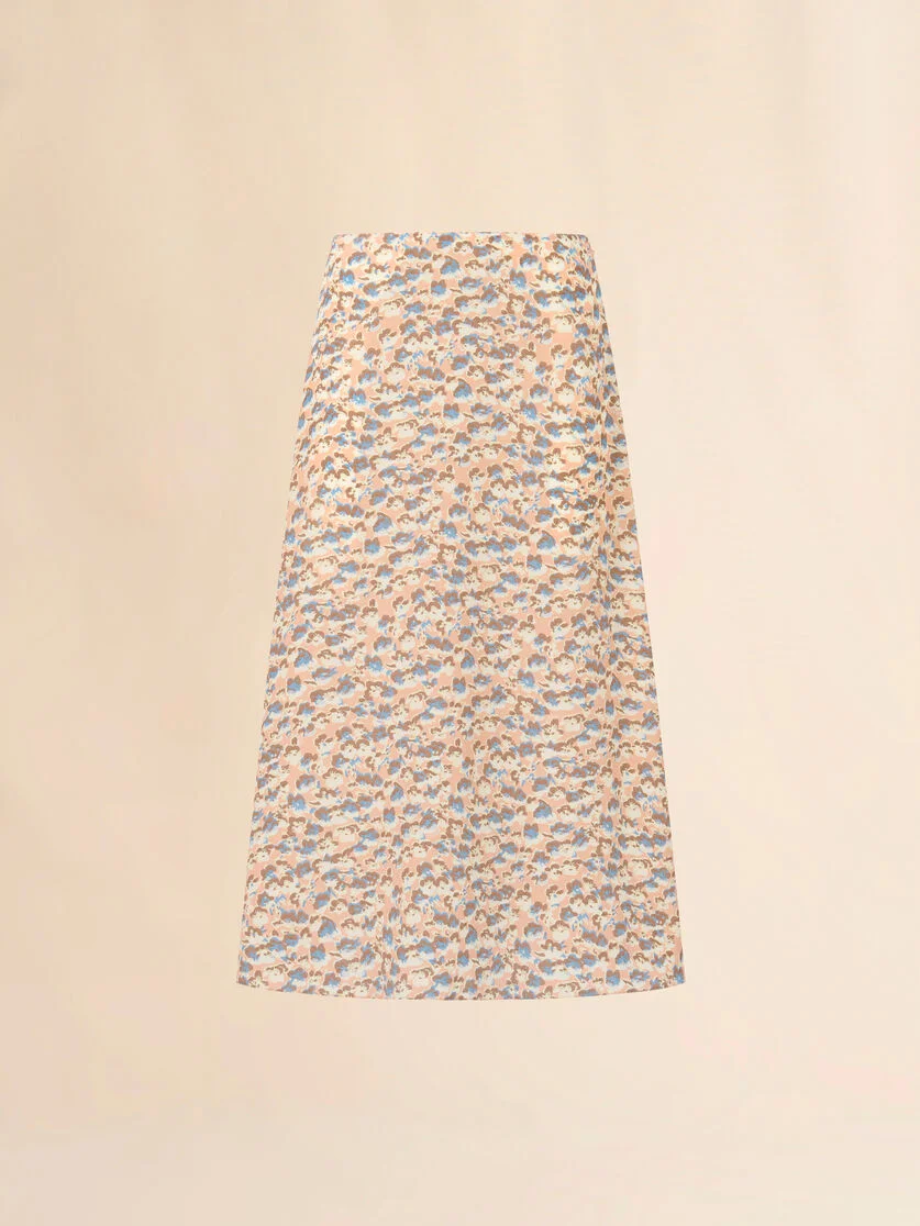 PINK CRÊPE DE CHINE FLUID SKIRT WITH ANEMONES PRINT