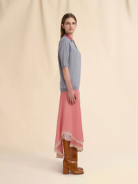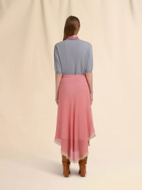 Skirt made from silk creponne. Midi cut with peplum waist and front slit. Flowing asymmetrical silhouette with contrast ruffle hem. Concealed side zipper closure. Made in Italy MODEL GOMA0770QVUTSG2200C33